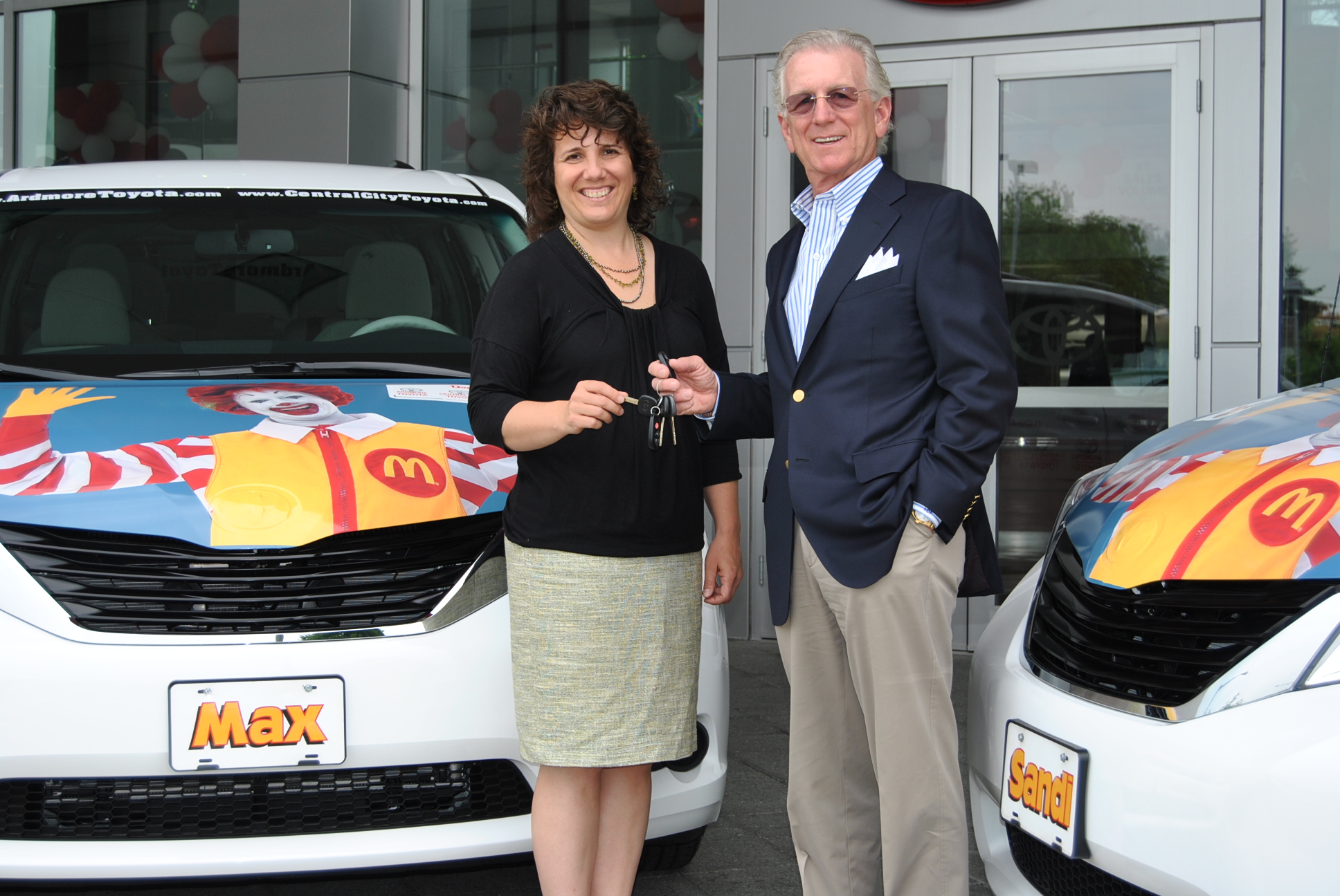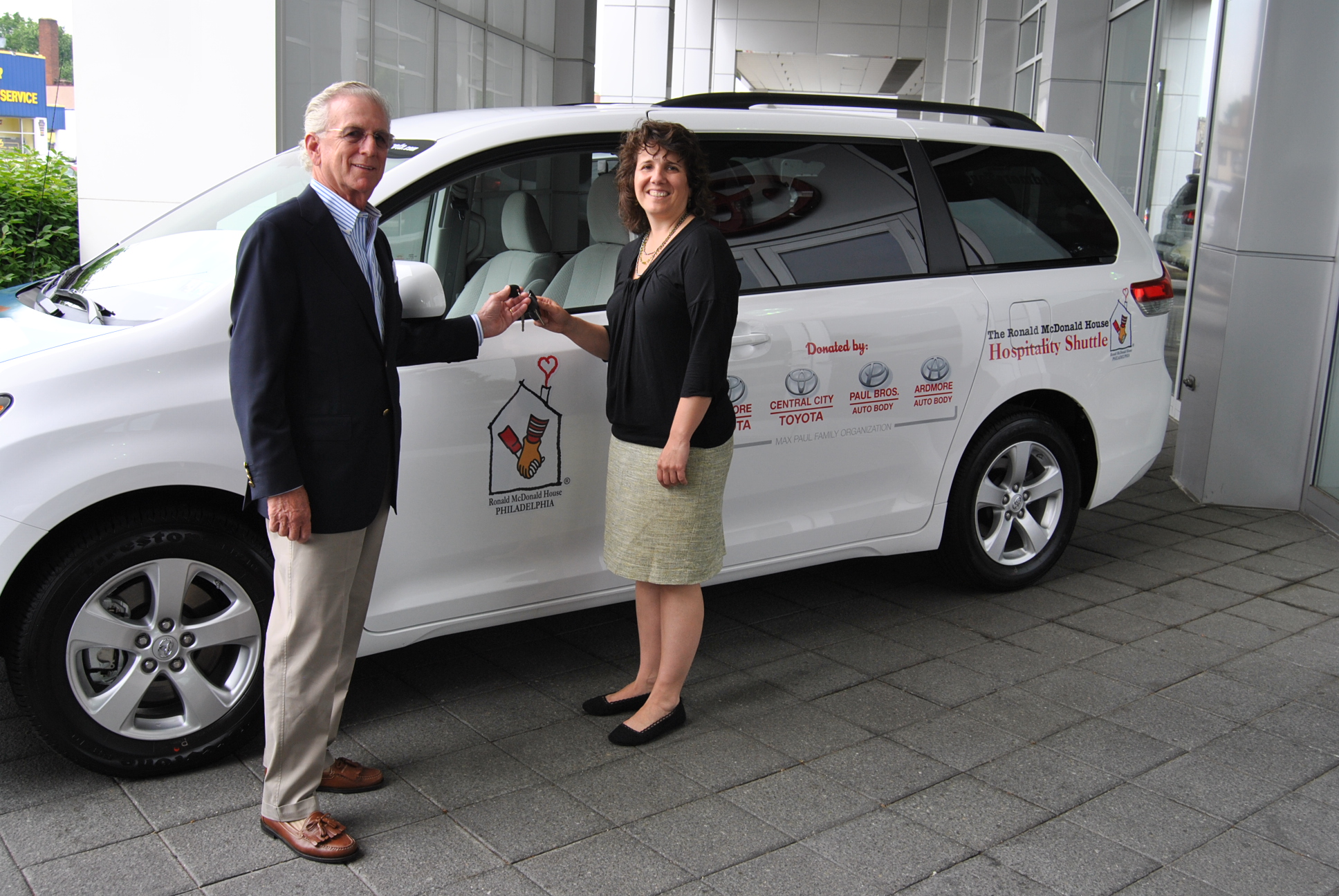 On Tuesday, June 18th, 2013, Susan Campbell, Executive Director of the Philadelphia Ronald McDonald House (PRMH) and Linda Parry, the Director of Volunteers at PRMH arrived at Ardmore Toyota to accept a very generous donation from Max Paul. The Max Paul Family Organization through Ardmore Toyota, provided PRMH with two new 2013 Toyota Sienna vans to provide reliable transportation to and from the hospital for families staying at PRMH while their children receive lifesaving medical care.