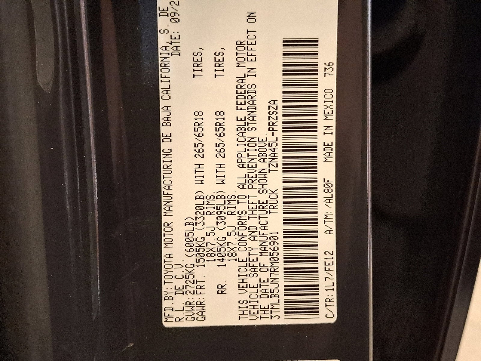 - Vehicle Name: Toyota Tacoma 4WD