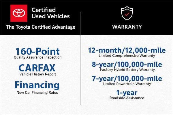 We performed a 160-Point Inspection as part of our extensive Reconditioning process. We provide a Vehicle History Report and you get a 12-Month/12,000-Mile Comprehensive (bumper to bumper type) Warranty and a 7-Years/100,000-Mile Powertrain Warranty from date of purchase as new plus 1 Year of Roadside Assistance.